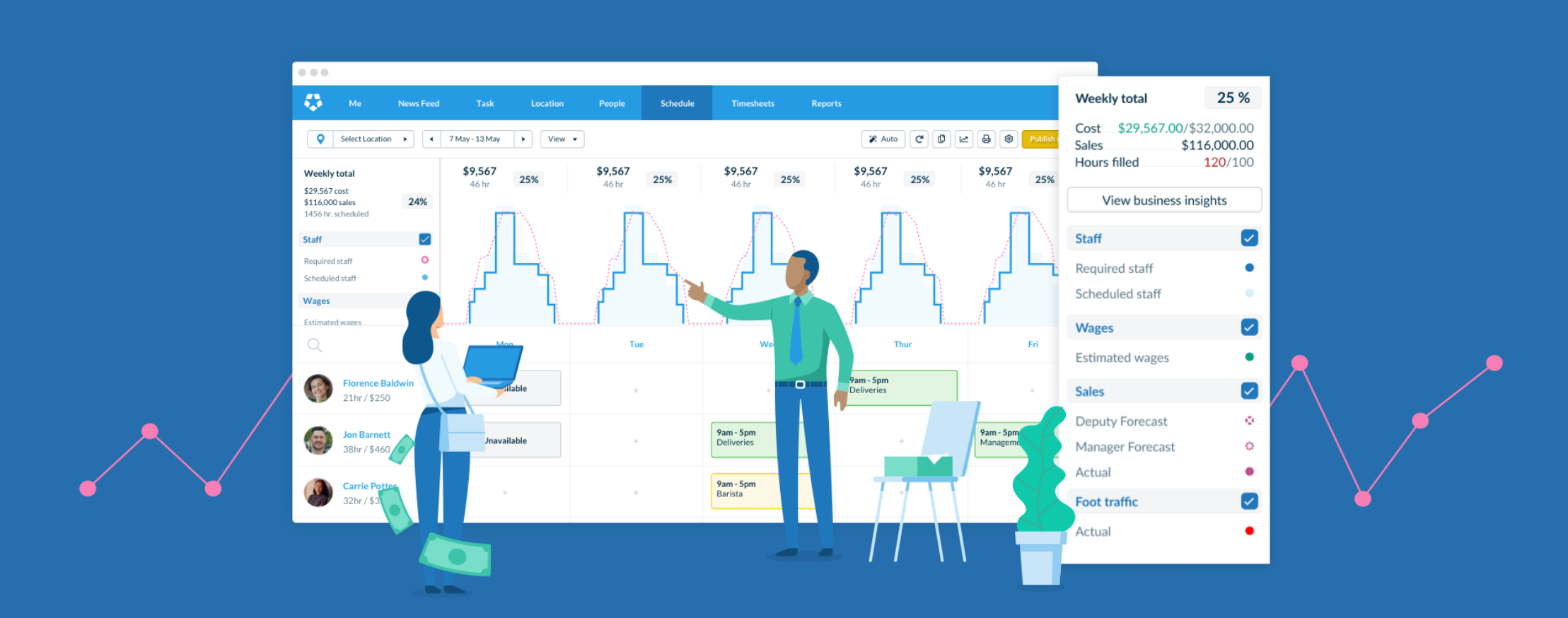 Drive down costs and ensure optimal schedule coverage with clear and accurate business insights. While easy and intuitive to use, Smart Scheduling surfaces powerful insights about business performance that can be used to make better business decisions